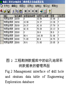 以地层岩性数据表为例,要求录入钻孔编号、岩层起始深度、岩层终止深度、层 #p#page_title#e#厚、岩性(地层名称)、地层代码(地层年代)、岩层走向、岩层倾向、岩层倾角、接触关系、地质描述等数据。随着工程勘测的进展,能够方便地修改补充和管理勘测数据。图2是工程勘测数据库中钻孔地层系统数据表的管理界面。