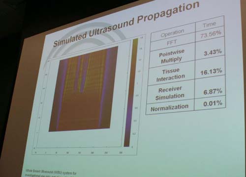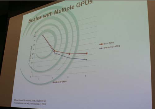 TechniScan开始研发这种设备的时候,主要面临的问题是,扫描图象成像所需要巨大的图象处理速度,当TechniScan高级软件工程师吉姆哈德威克买了的GeForce 8系列卡,发现Nvidia的CUDA上SDK,一种更好的解决办法出现了。吉姆是一个游戏迷,所以他买了卡,享受最新的和即将到来游戏,但是一个更快速运行的程序,在GPU上运行。辗转到2008年-今天的代码移植到CUDA上,并利用4个TeslaC 870板。在渲染时间,人数从16核心Core 2个集群的45分钟,缩短到16分钟。