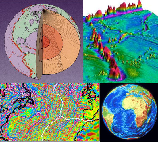 2) 地球物理学:探索地球内部的物质性质和组成,包括岩石、矿物、地热等,以及地球的物理场,如地磁、地电、地热等。