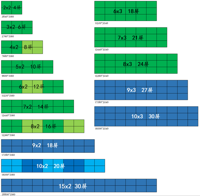 过去这种超高分大屏是由多机分布式组成,每台机器驱动一个屏幕,通过软件控制方式实现的,但其控制方式非常复杂,成本太高,可靠性维护要求更高,显示内容方面涉及到图形、图像、视频、文字各种不同形式数据格式,有的简单通过分割方式实现,有的需要图形生成软件通过复杂的设计与控制实现,